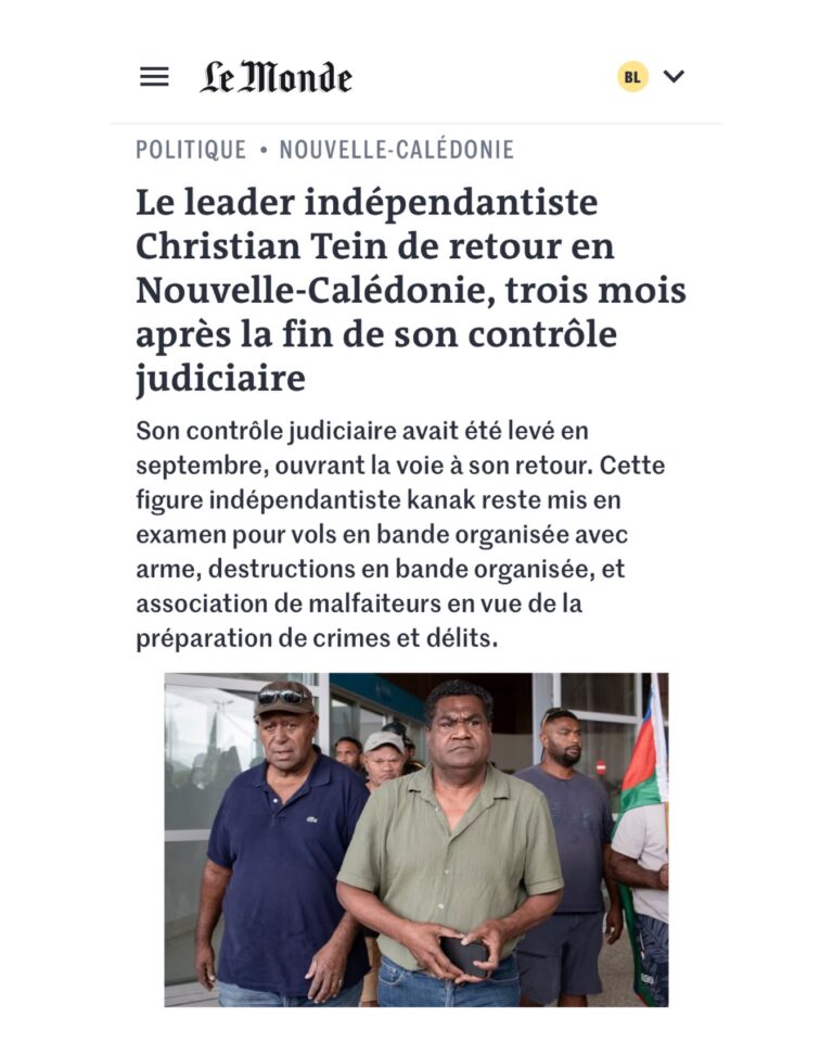 Retour de Christian Tein en Kanaky-Nouvelle-Calédonie