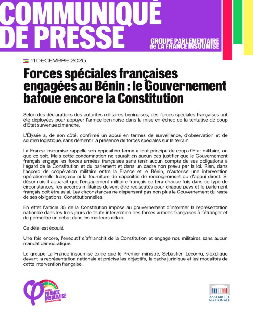 Force spéciale engagée au Bénin : le gouvernement bafoue la Constitution