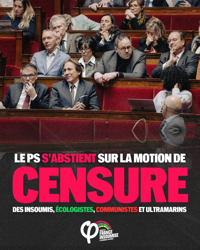 À chaque motion, l’écart se resserre. La majorité macroniste tient uniquement grâce aux renoncements du PS. Qu’ils l’assument face au peuple !
