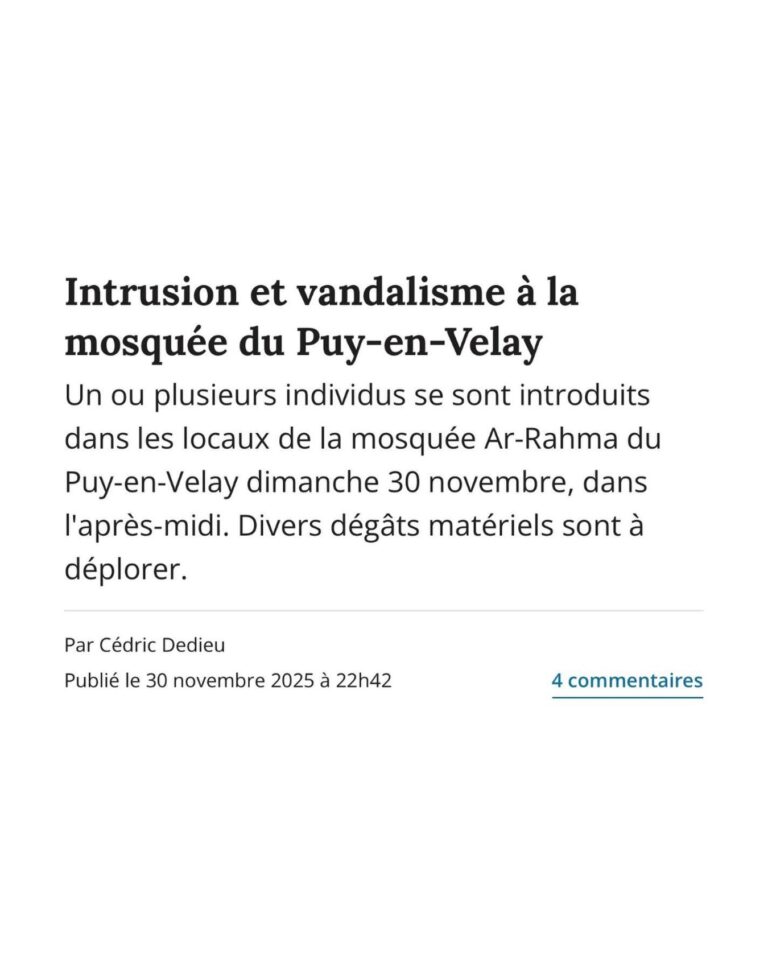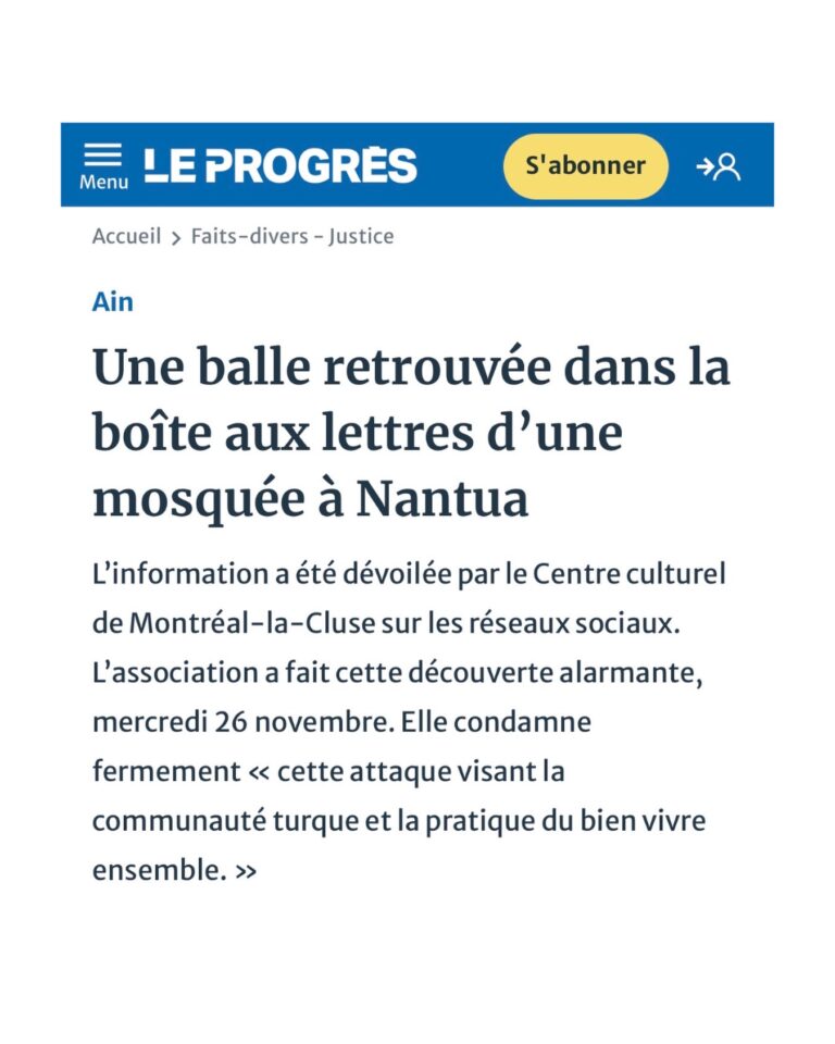 Une balle déposée dans la boîte aux lettres d’une mosquée